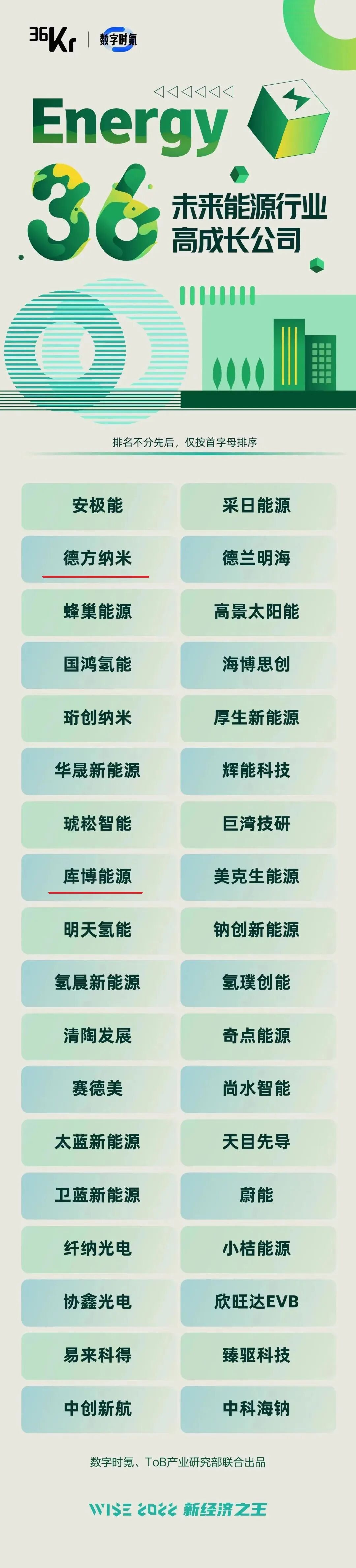 在此背景下,36氪公布「Energy 36」未来能源行业高成长公司名单,